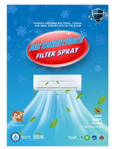 Introducing CuRaksha AC Cleaner Spray, your high-efficiency, water-based solution designed for the deep cleaning and disinfection of your entire AC unit—including filters, cooling coils, fins, and ducts. Utilizing advanced Nano Copper technology, this powerful spray is effective against bacteria, viruses, and fungi (including mold and spores) that accumulate within the unit, ensuring purified, healthy airflow. By killing 99.9% of germs in just 60 seconds, it not only cleans but also leaves surfaces with a long-lasting antimicrobial shield, significantly improving indoor air quality and cooling efficiency. Unlike harsh chemical cleaners, CuRaksha AC Cleaner Spray is skin-friendly, non-toxic, and eco-friendly, making it safe for use in all indoor environments.